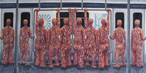 Oil Paint, Inks, Charcoal, and Pencil on Canvas